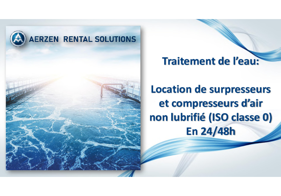 Pour faire à tout problème imprévu dans le traitement des eaux industrielles, des eaux usées et au sein des stations d'épuration, AERZEN propose une gamme complète de compresseurs et de surpresseurs en location, 100% sans huite, livrables partout en France en 14h/48h