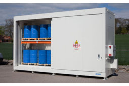 Cette armoire pour produits chimiques répond aux règles de sécurité sur le stockage sécurisé de produits polluants et toxiques mais aussi de liquides inflammables selon la norme H 224-226.L'armoire possède un système de raccordement (DN 75) ainsi qu'un système de ventilation.